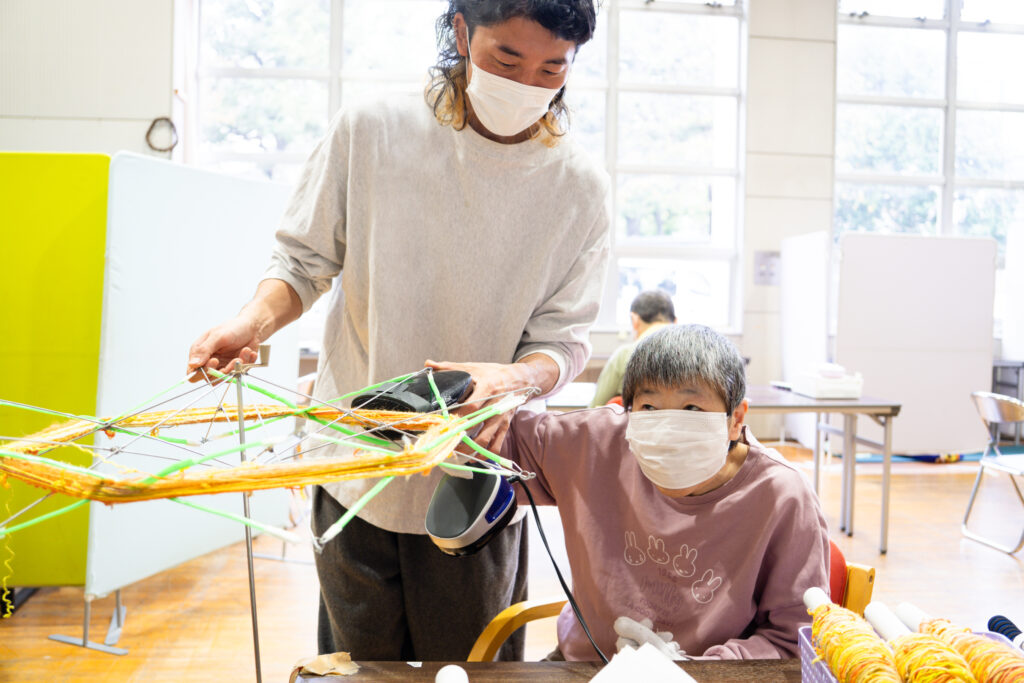 今回、伴さんと一緒に訪れたのは社会福祉法人「いたるセンター」が運営する東京・杉並区の「あけぼの作業所」。ここでは原料の短い糸を長く繋ぎ合わせ、糸玉にする作業を行っている。